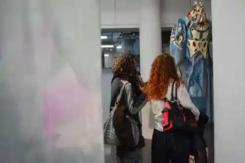 Vue d'une visite de l'exposition Art Emergence, "Double trouble", Frac Île-de-France, Les Réserves, 2025 © DR