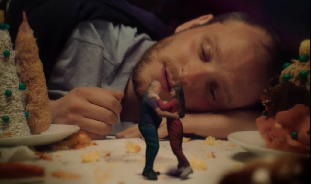 Pour la Project Room, c’est Ferdinand, le protagoniste d’un film de 2021, que nous accompagnons dans son périple. Routier et livreur de jouets, Ferdinand chante dans son camion pour passer le temps et sillonne nuit et jour une variété de territoires et de paysages. Depuis leur navette, des extra-terrestres intrigués par la mélodie provenant du camion, décident de le suivre et lui envoient une des leurs. C’est au milieu de cartons filmés de plastique desquels scintillent des lumières colorées ou sur une banquette-couchette et des sièges de camion que nous sommes invités à regarder le film, à la place même du personnage central. Tour à tour, Ferdinand conduit son camion, chante, séduit une vache, dîne avec des collègues dans un restaurant routier, regarde un couple danser dans un rêve éveillé ou essaye d’établir un dialogue avec l’enfant-alien qui s’invite dans son véhicule. Nous accédons ainsi à la solitude de Ferdinand qui s’envisage une autre vie qu’il finit par poursuivre guidé par la voix de cette enfant d’ailleurs.