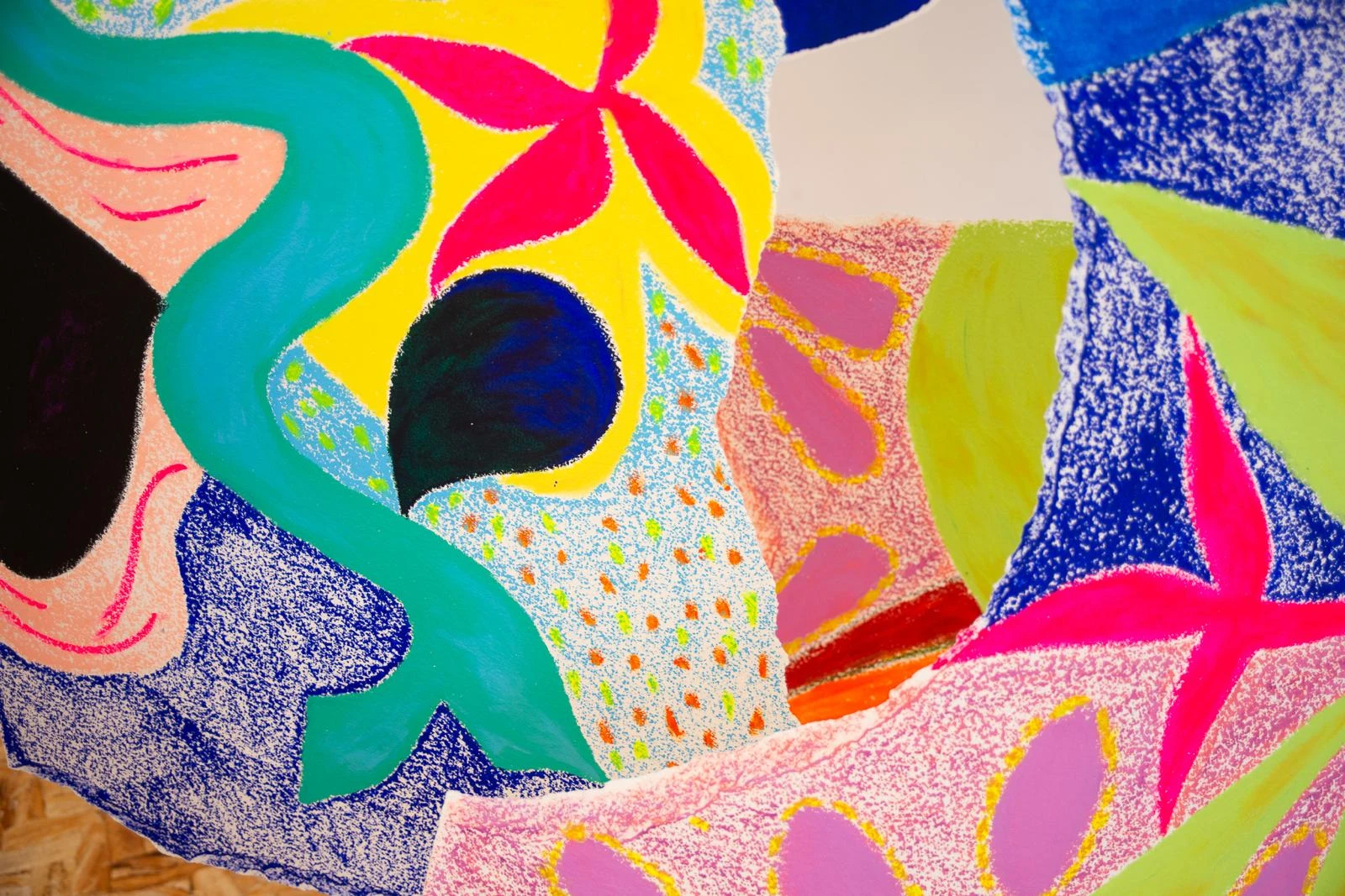 L’exposition de Carlota Sandoval Lizarralde dans la Project Room dans le cadre de Drawing Now et du Printemps du dessin met l’accent sur sa pratique du dessin qui se matérialise de manières diversifiées. Classiquement présentés au mur, créant une installation, ou formant une sculpture en suspension, ses dessins offrent des représentations de paysages idylliques et colorés. Les espaces sont volontairement saturés d’une flore composite. Ils assimilent à la fois des réminiscences de la Colombie et une esthétique issue de la pop culture.