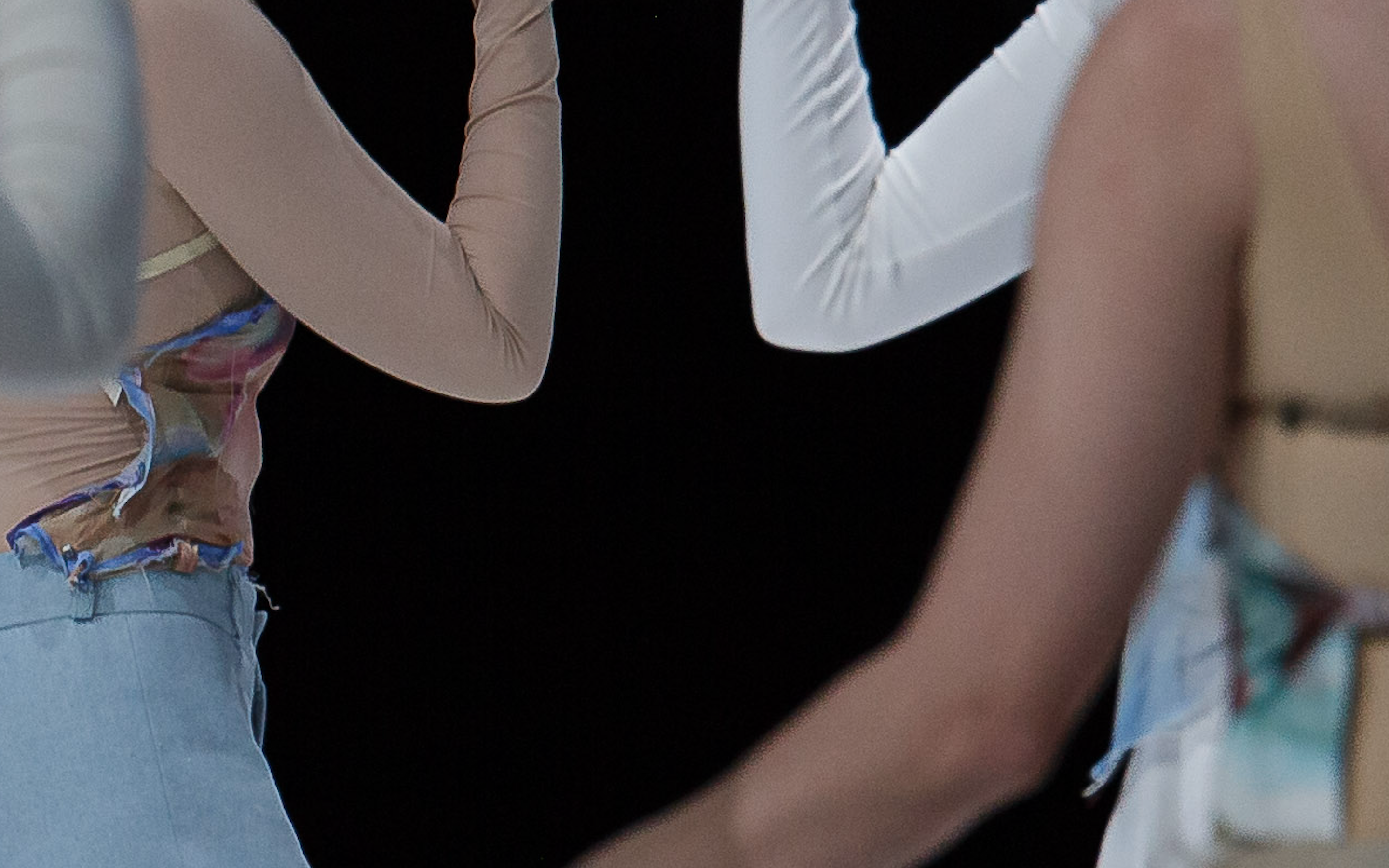 As a one time performance at Le Plateau, Promenade is an encounter and conversation between Armin Hokmi and Mathilde Denize’s work. A meeting of the bodies in motion, with their inward gestures in overlap and continuity of the vast space surrounding them. The time in this afternoon is spent with the gentle reception of the superimposition of the two worlds, finding resonances in their colors, patterns, their shared edges and crossings. A merging that is both felt and seen. A morphing of Armin’s choreographic writing and Mathilde’s visual and corporeal universe.