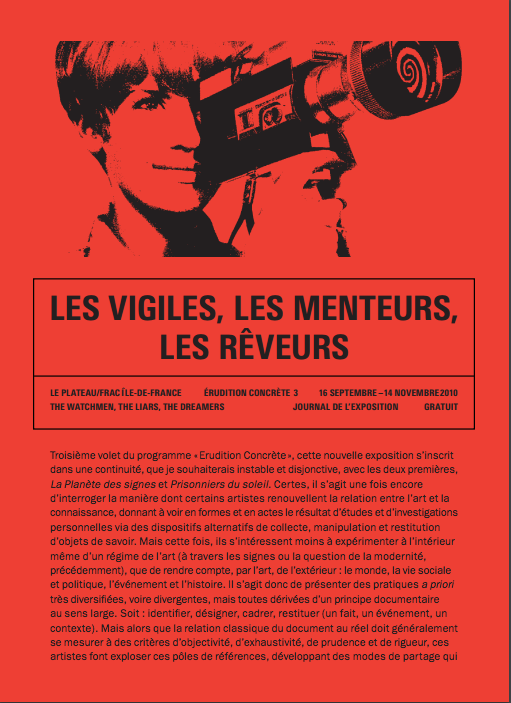 Journal-catalogue réalisé à l’occasion de l’exposition Les vigiles, les menteurs, les rêveurs au frac île-de-france / le plateau (16 septembre – 14 novembre 2010)